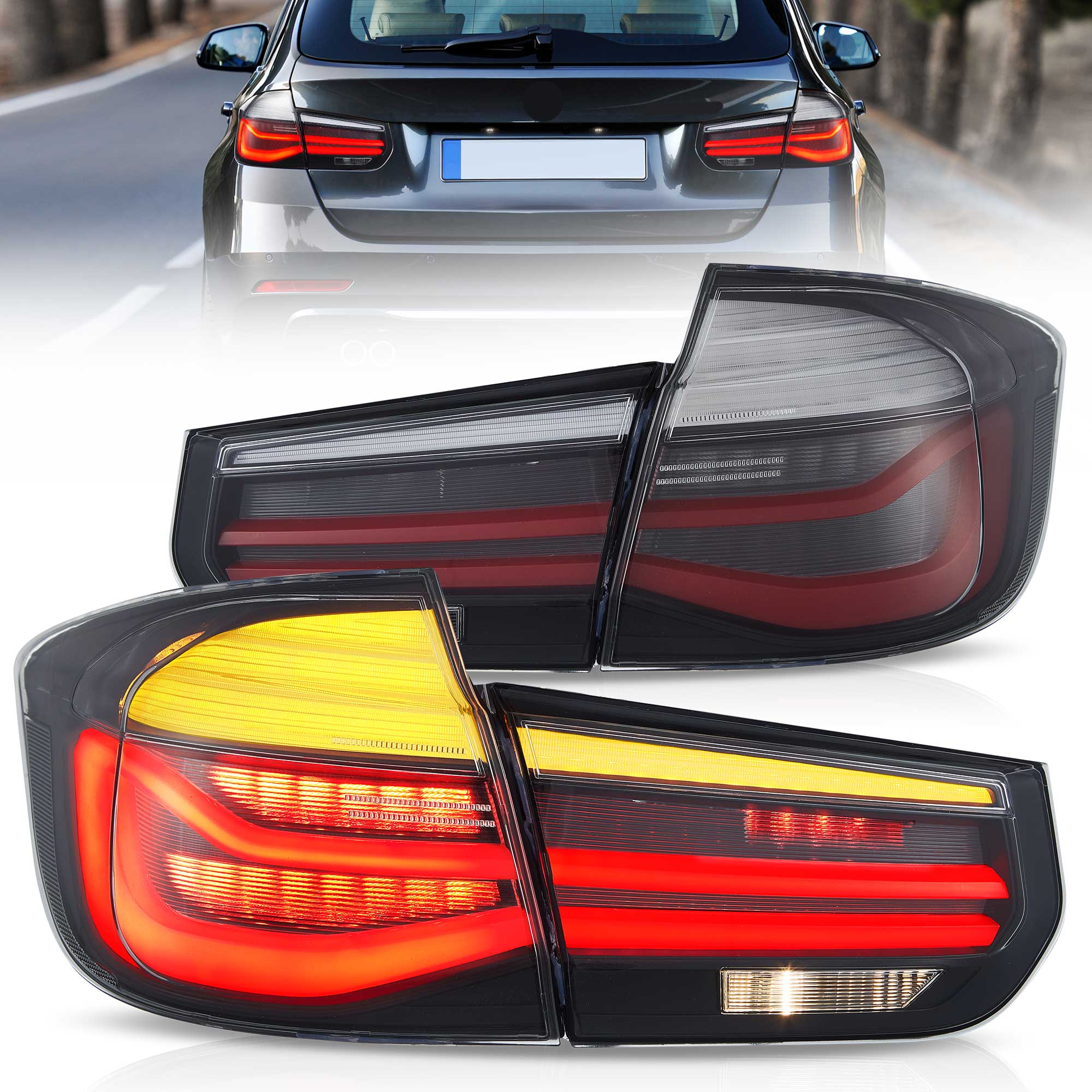 Fanali posteriori LED progettati per migliorare visibilità e chiarezza delle segnalazioni su BMW F31 Touring (2012–2019). Il design presenta lente trasparente e scocca rosso/nera che giocano con la luce grazie agli indicatori sequenziali ambra. Sistema luce: stop e marcia a LED, retromarcia alogena, fendinebbia LED e frecce sequenziali per comunicazioni nette. Confezione comprende coppia sinistra/destra, certificazione E‑MARK e garanzia produttore di 1 anno.