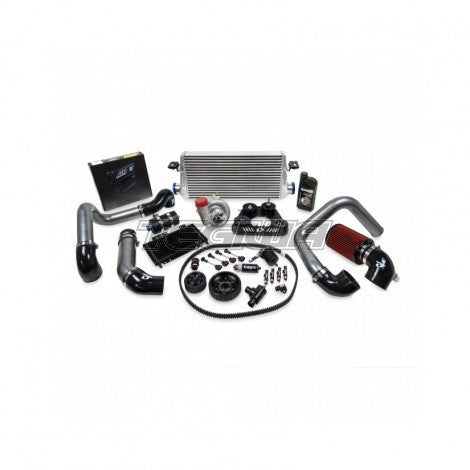 Kraftwerks USA is pleased to introduce the newly redesigned supercharger system for the '00-'03 Honda S2000. Centered around the highly efficient Rotrex C38-81 Supercharger, the Kraftwerks Supercharger kit produces impressive results throughout the entire power band. While unlike any other forced induction system, the Kraftwerks supercharger system provides a linear power curve, torque on demand, cooler operating temperatures, and total drivability. The Kraftwerks supercharger system provides instant throttle response and a progressive power curve that increases all the way to redline without the typical 'spiking' or 'surging' associated with turbochargers. This unique, more usable power curve results in reduced cylinder pressures, less strain on engine components, and increased reliability. Rotrex superchargers also operate much cooler when compared to turbochargers and other supercharger systems, which reduces the engine_s intake air temperature as well as its risk of detonation. Rotrex superchargers are renowned for their compact size, high adiabatic efficiency, low vibration, and quiet operation. Their unique traction drive technology is what makes all of this possible, which, unlike other superchargers, transmits power through frictional forces between its rolling elements. Each Rotrex unit features its own self-contained oiling system that remains independent of the engine. Its dual-action oil pump supplies traction fluid to the supercharger while the supplied cooler ensures proper fluid temperatures at all times. Like all Kraftwerks supercharger systems, the S2000 supercharger system includes all the necessary brackets, and hardware for a simple bolt-on installation. FEATURES & BENEFITS: 410whp/ 280 lb.ft. Through Skunk2 Header and Exhaust Retains Factory A/C and Accessories Grams Performance & Design 1,000cc Injectors Plug & Play Injector Connectors Skunk2 4 BAR MAP Sensor Grams Performance & Design 265lph High Flow Fuel Pump Rotrex C38-81 Supercharger w/ 00mm Pulley (11psi) NEW 30mm Drive Belt (10mm Wider Than Previous Generation) Independent Cogged Drive System for Zero Slip Front Mount Intercooler (23 x 12 x 3 inch) Aluminum Intercooler Piping Oil Cooler High-Quality CNC-Machined Brackets and Idler Pulley High-Quality Fasteners and Hardware Recirculating Bypass Valve Simple Bolt-On Installation - No cutting, Drilling, or Welding * Upgraded Clutch and Fuel Pump Recommended