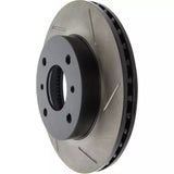 STOPTECH SportStop 1-piece rotors are slotted direct replacement discs for your factory brake system. Slotting helps wipe away the debris that forms between the pad and the disc, adds more bite, and can help the rear brakes to match the aesthetics of a front big brake kit. The rotor finish helps prevent glazing of the pads and improves wet and dry braking performance. The rotors feature a durable black e-coating on the non-swept areas of the rotor to prevent corrosion. The rotors are also available cryogenically treated to better align the molecular structure of the disc for enhanced durability and longer life.